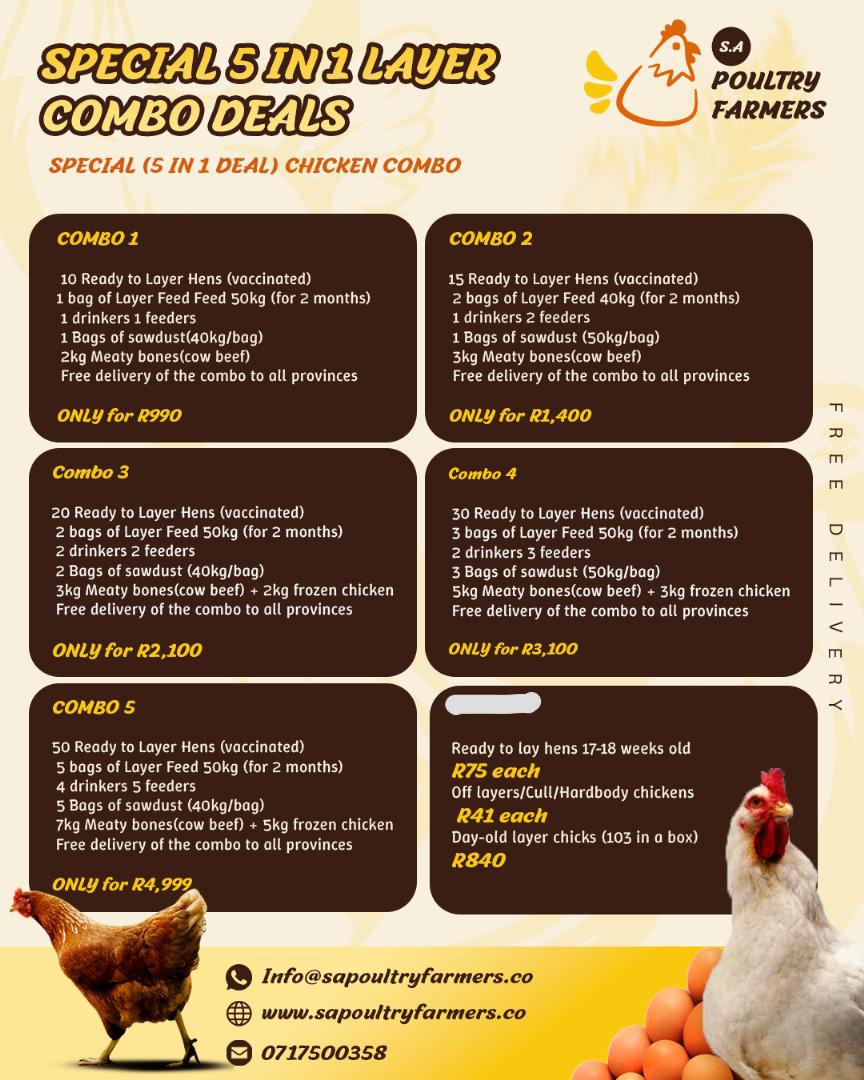 SA Poultry farmers guarantee,s that all Broilers and layer chicks are of the best quality (Grade AA chicks), vaccinated on day one as per the laws/rules, against Mareck’s, Bronchitis, and Newcastle disease.