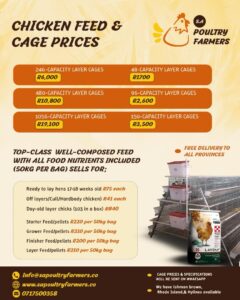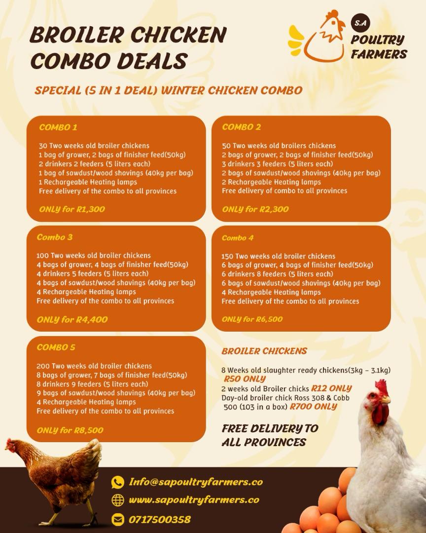 SA Poultry farmers guarantee,s that all Broilers and layer chicks are of the best quality (Grade AA chicks), vaccinated on day one as per the laws/rules, against Mareck’s, Bronchitis, and Newcastle disease.